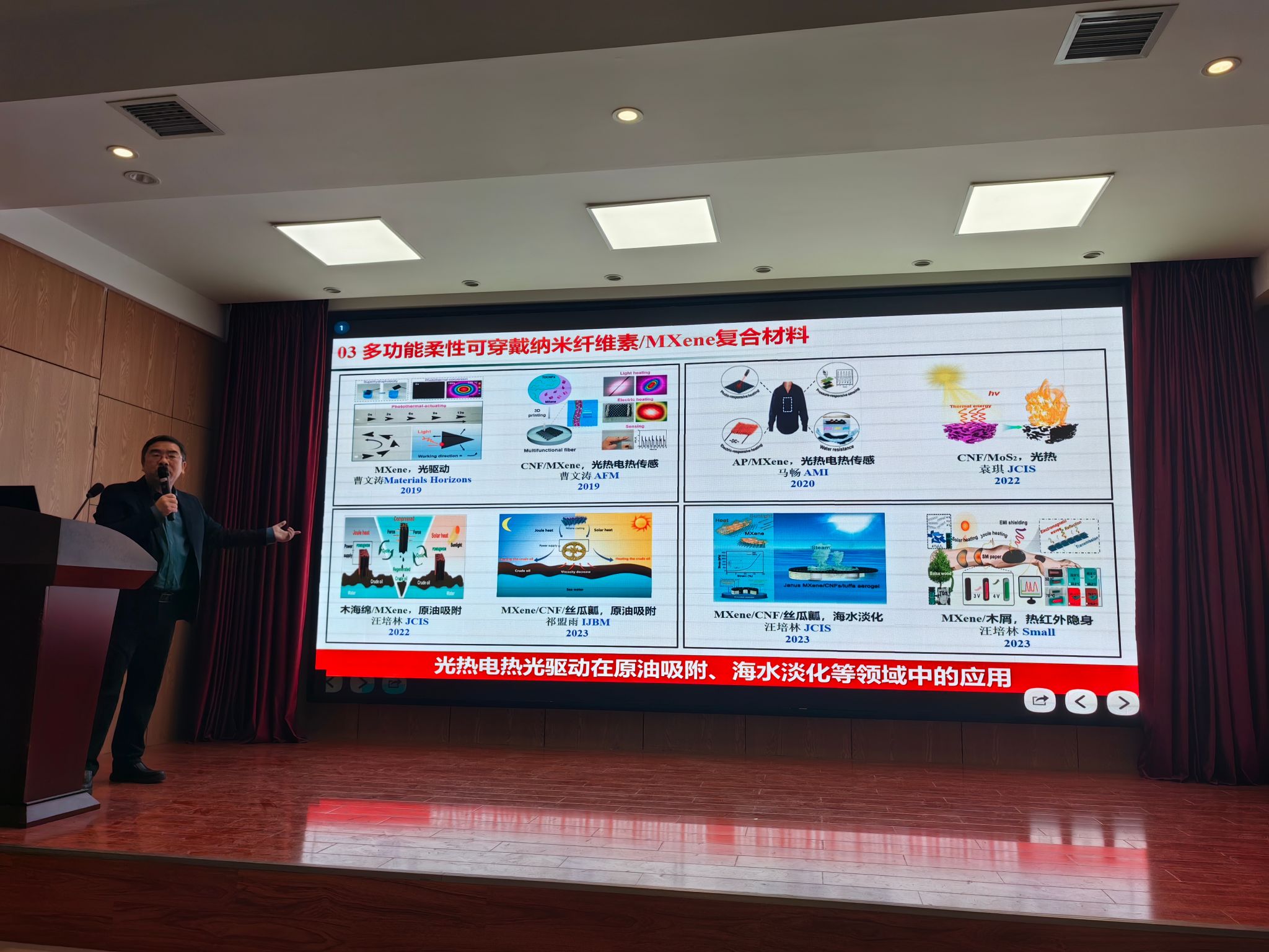 近日,應(yīng)我校輕工科學(xué)與工程學(xué)院(柔性電子學(xué)院)和研究生院邀請,北京林業(yè)大學(xué)馬明國教授做客我?!拔囱雽?dǎo)師論壇”,在輕工學(xué)院學(xué)術(shù)報(bào)告廳作了題為“多功能柔性可穿戴納米纖維素/MXene復(fù)合材料研究”的學(xué)術(shù)報(bào)告。報(bào)告由輕工學(xué)院副院長劉國棟主持,學(xué)院部分教師及相關(guān)專業(yè)研究生參加了本次報(bào)告會。