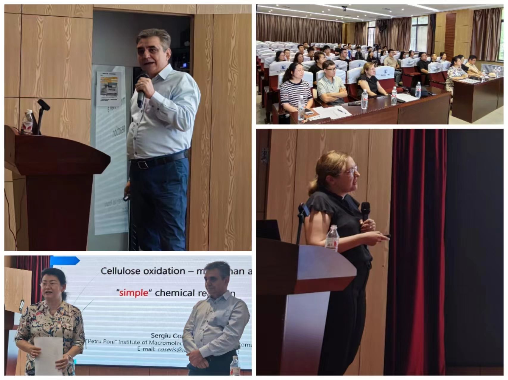 7月10日,應我校輕工科學與工程學院(柔性電子學院)、國際合作與交流處、科技處邀請,羅馬尼亞科學院皮特魯-龐尼高分子研究所 Sergiu Coseri 教授和Andreea Laura Scutaru研究員做客我?!扒把乜茖W報告”和“未央導師論壇”,并作了題為“Cellulose oxidation – more than a “simple” chemical reaction”和“A journey from Romania beauty to the beauty of polymer-based materials used in photocatalytic applications or as fluorescent sensors”的報告,報告會由國際處處長張素風主持,學院相關教師及研究生參加了此次報告會。