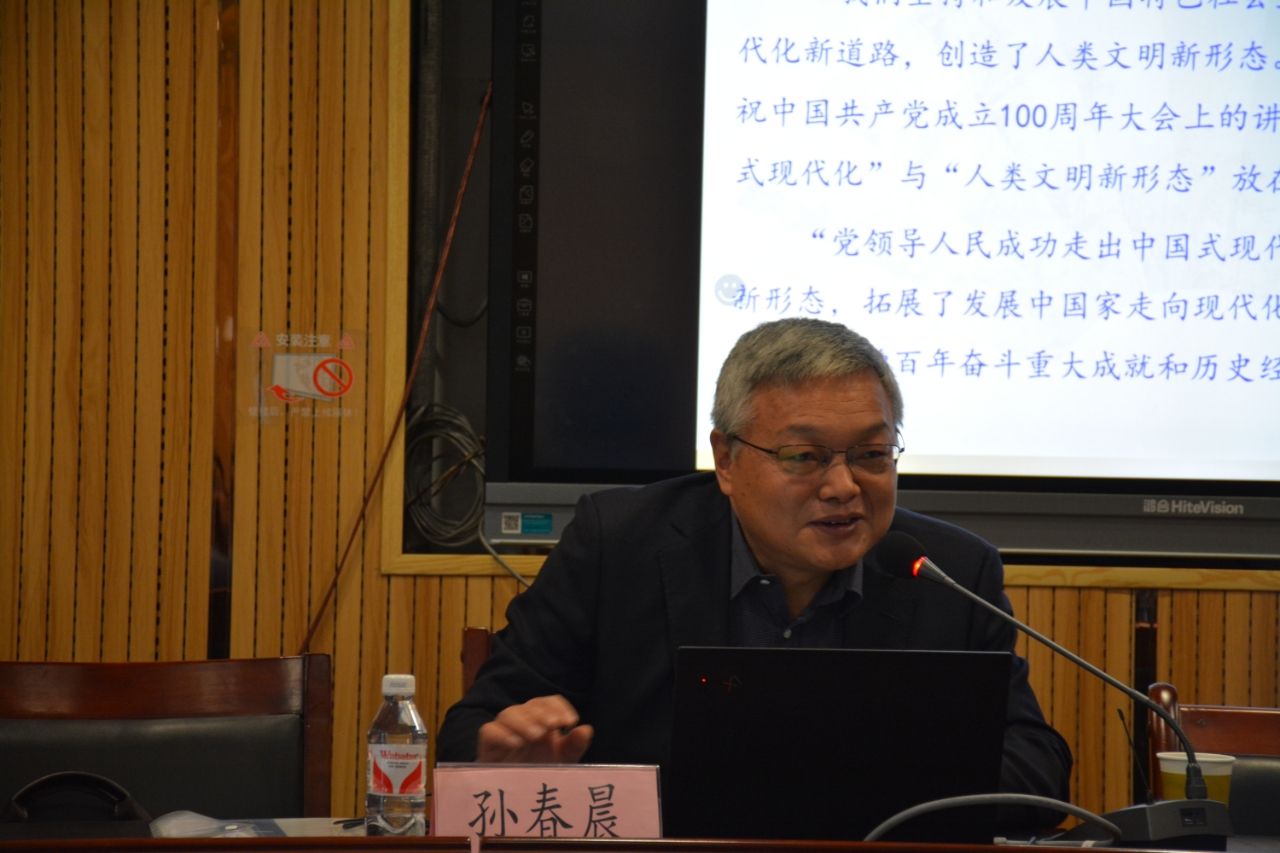 孫春晨研究員緊緊圍繞“中國式現(xiàn)代化與人類文明新形態(tài)”這一主題,從關(guān)于中國式現(xiàn)代化與人類文明新形態(tài)的重要論述、中國式現(xiàn)代化與人類文明新形態(tài)的密切關(guān)聯(lián)、創(chuàng)造人類文明新形態(tài)是中國式現(xiàn)代化的本質(zhì)要求、建立在“兩個(gè)結(jié)合”基礎(chǔ)上的人類文明新形態(tài)等四個(gè)方面展開系統(tǒng)闡釋。最后,對師生感興趣的問題進(jìn)行了解答并提出建議。