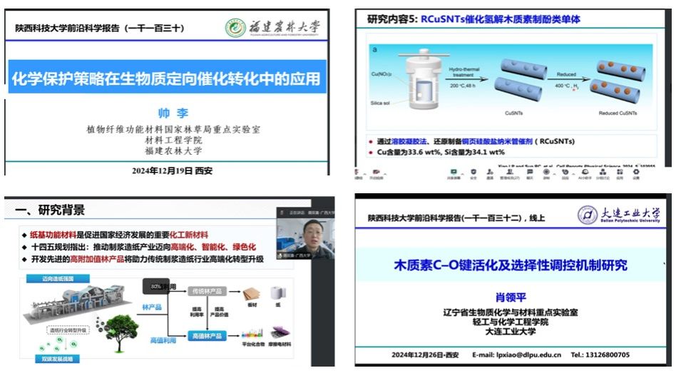 應(yīng)我校輕工科學(xué)與工程學(xué)院(柔性電子學(xué)院)、科技處及前沿院邀請(qǐng),福建農(nóng)林大學(xué)帥李教授、廣西大學(xué)聶雙喜教授和大連工業(yè)大學(xué)肖領(lǐng)平教授分別在近日做客我校“前沿科學(xué)報(bào)告”活動(dòng),開(kāi)展了題為“化學(xué)保護(hù)策略在生物質(zhì)定向催化轉(zhuǎn)化中的應(yīng)用”、“紙基摩擦電材料構(gòu)筑及應(yīng)用”和“木質(zhì)素C-O鍵活化及選擇性調(diào)控機(jī)制研究”的線上學(xué)術(shù)報(bào)告。輕工學(xué)院相關(guān)專(zhuān)業(yè)教師和研究生參加了報(bào)告會(huì)。