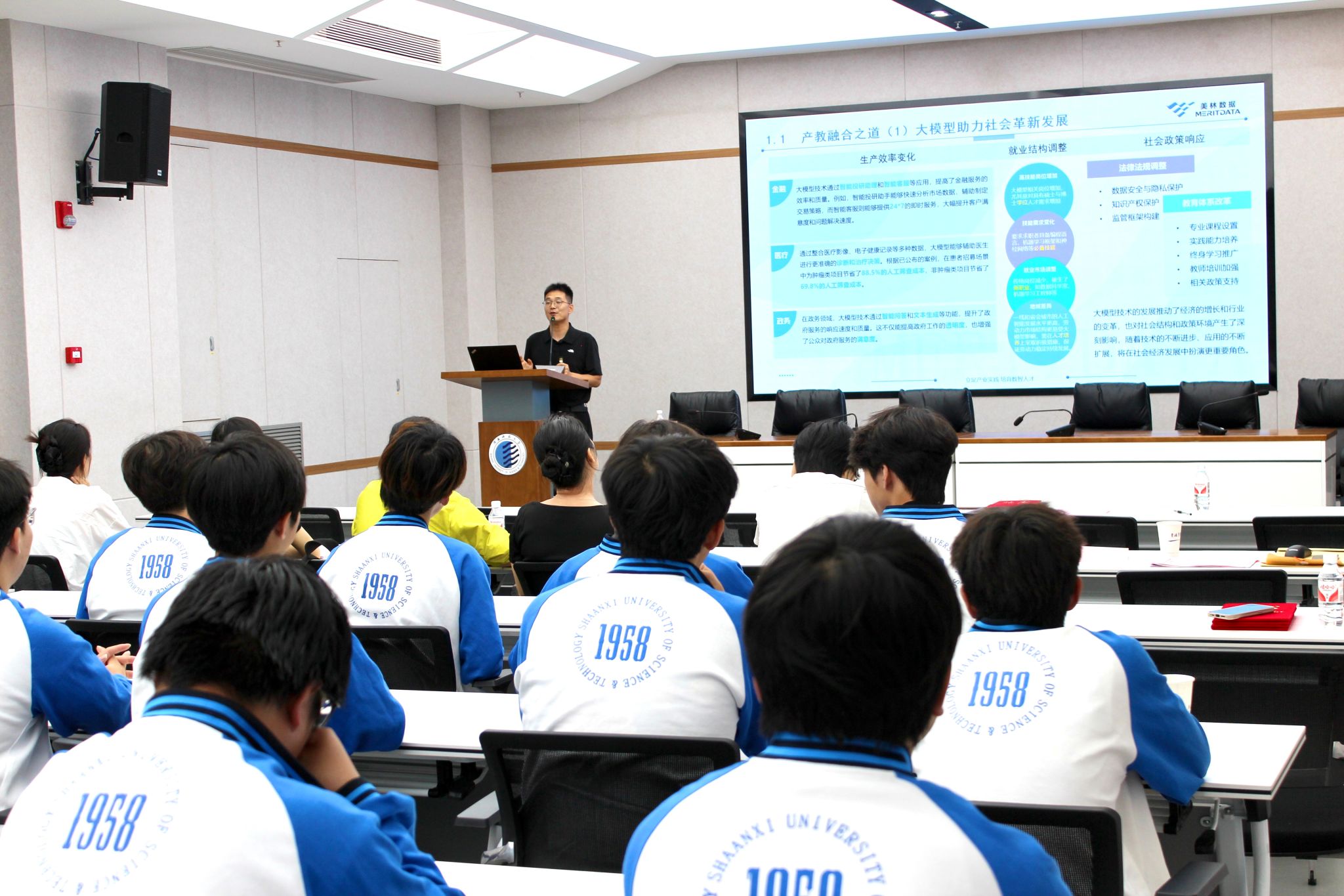 為深入貫徹落實(shí)國家數(shù)字經(jīng)濟(jì)發(fā)展戰(zhàn)略需求、全面提升教師與學(xué)生的數(shù)字技術(shù)應(yīng)用能力,落實(shí)學(xué)校七屆四次雙代會關(guān)于深化產(chǎn)教融合、科教融匯的部署,促進(jìn)信息技術(shù)與教育教學(xué)的深度融合,應(yīng)校教務(wù)處、經(jīng)濟(jì)與管理學(xué)院邀請,5月23日下午在至誠至博會議室,美林?jǐn)?shù)據(jù)技術(shù)股份有限公司數(shù)智研究院副院長郭田奇做客我校“教育教學(xué)論壇”,作題為“駕馭人工智能是人才培養(yǎng)的時代命題”的講座。會議由院長助理邢戰(zhàn)雷主持,學(xué)院相關(guān)教師和數(shù)字經(jīng)濟(jì)專業(yè)全體本科生參加。