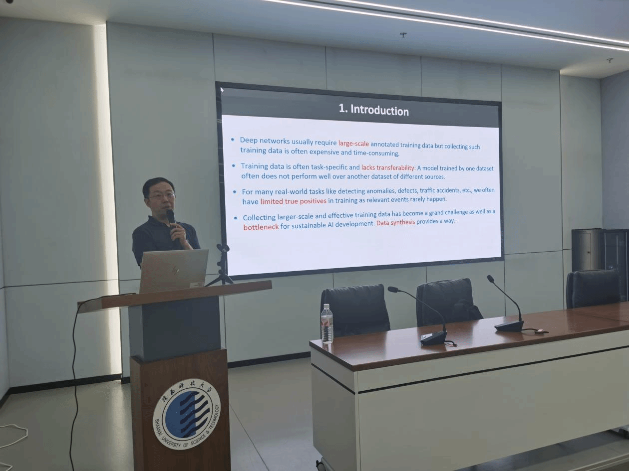 6月17日上午,受電氣與控制工程學(xué)院邀請(qǐng),南洋理工大學(xué)呂士健博士做客陜西科技大學(xué)“前沿科學(xué)報(bào)告”。作了題為“Sustainable AI via Image Generation and Cross-Domain Transfer”的學(xué)術(shù)報(bào)告。會(huì)議由電控學(xué)院副院長(zhǎng)周強(qiáng)主持,相關(guān)師生80余人參加了此次報(bào)告會(huì)。