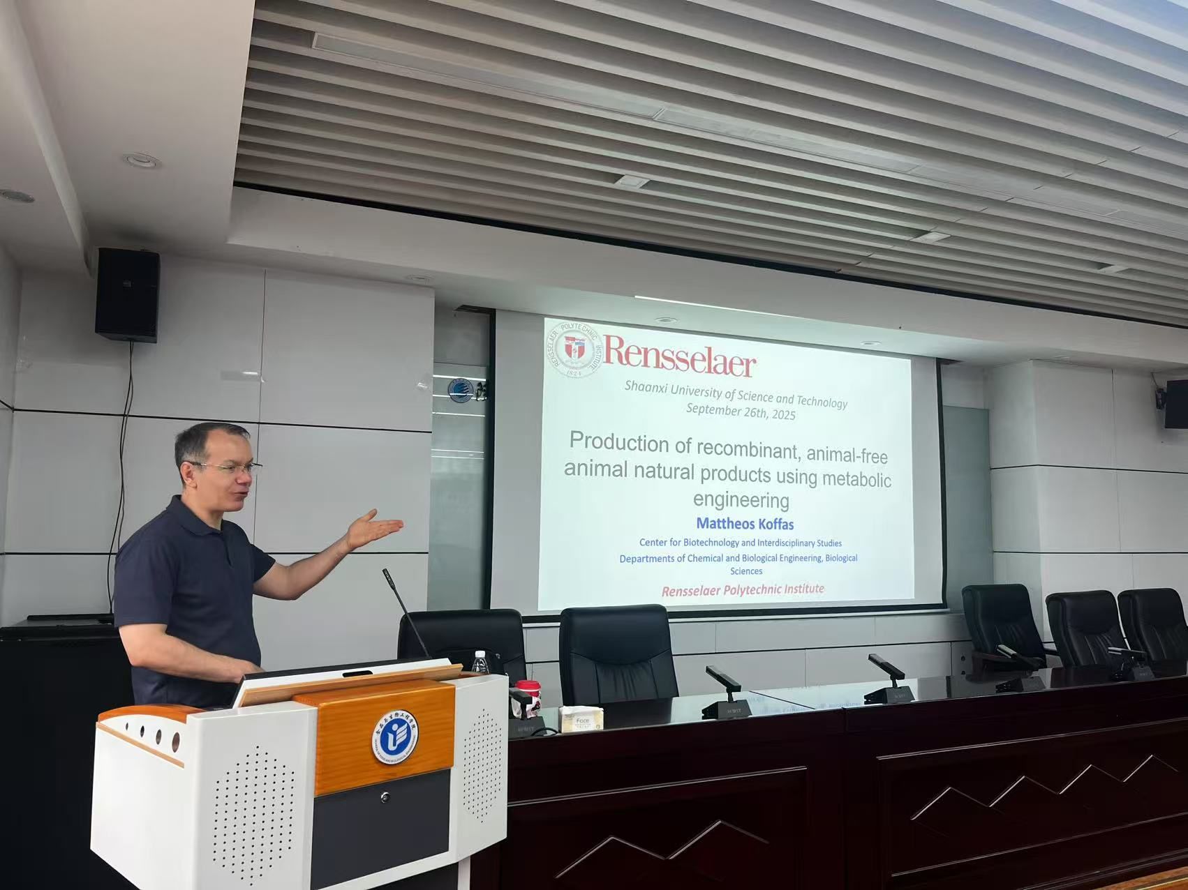 報告會上,Koffas教授系統(tǒng)介紹了如何利用代謝工程技術手段改造大腸桿菌等微生物細胞來生產(chǎn)動物來源的天然產(chǎn)物,如肝素和軟骨素硫酸(GAGs)以及蛛絲蛋白,重點介紹了包括同源建模優(yōu)化酶活性、重組表達系統(tǒng)設計、工程化菌株生產(chǎn)等挑戰(zhàn)性問題的解決思路和辦法。報告會后,Koffas教授和在場師生進行了深入的交流,回答了師生提出的關于實驗過程中的模型構建、代謝調控等問題,討論了微生物合成技術在醫(yī)藥、化工各領域的發(fā)展前景。報告會后,Koffas教授參觀了我校輕工業(yè)博物館,詳細了解了我校的發(fā)展歷史、特色輕工學科研究成果,對我校的發(fā)展和科學研究成果表示了充分的肯定。通過此次交流活動,加強了雙方的交流和了解,推動了進一步的深化合作。